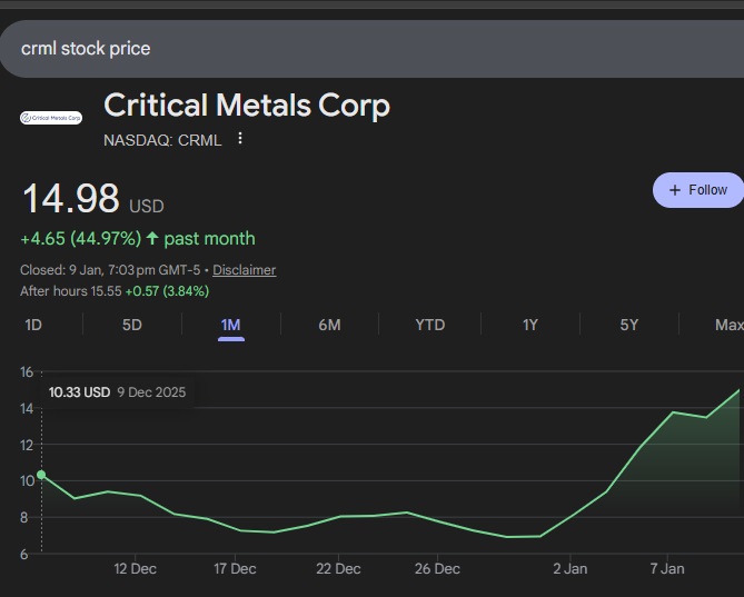CRML stock rose more than 20% last night Isnin ni tengok lagi apa jadi.