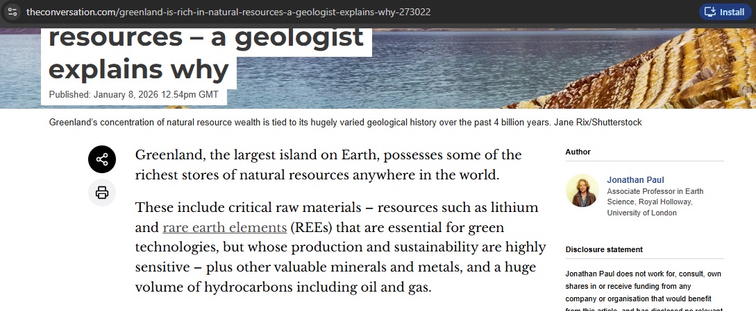 “A 2023 survey showed that 25 of 34 minerals deemed “critical raw materials” by the European Commission were found in Greenland.”
