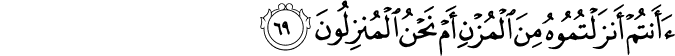 Is it you who brought it down from the clouds, or is it We who bring it down? 56:69
