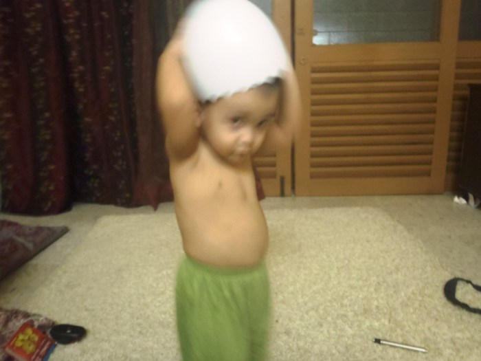 And when we got home in Kuantan, we were playing with Umar. A hard shell on Umar’s head.