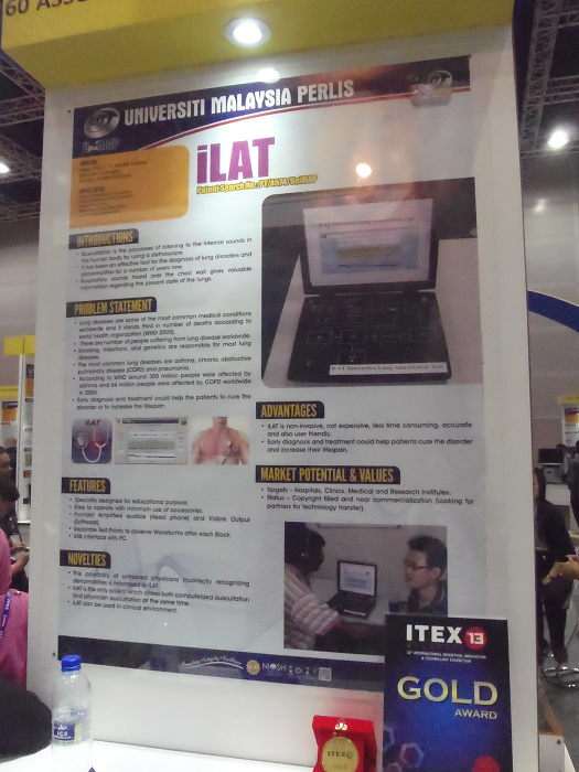 I went to ITEX ’13 today. This is my 3rd time visiting ITEX. The first invention showI attended was when I was 15 years old. I was a form 3 student, and then they were these people from Indonesia, Korea, and Australia involved in this web design thingy-ma-jing. It was under the Malaysian Invention and Design Society ( Link here) . But now I am thirst for new ideas!