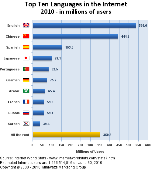 Statistik dari InternetWorldStat menunjukkan Bahasa Melayu lansung tiada dalam carta TOP 10